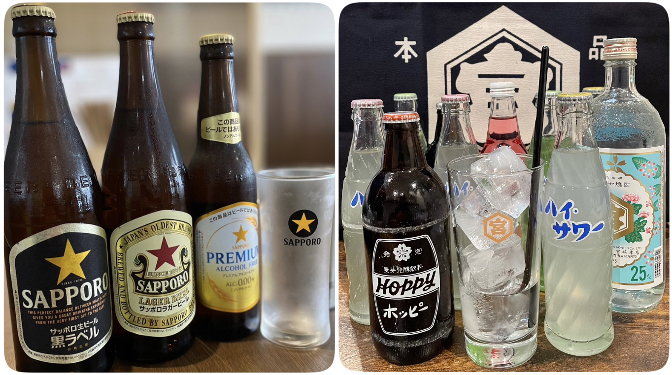 “餃子には瓶ビールでしょ”をお店のコンセプトとし、サッポロビールを使用。他にも瓶ドリンクを多数ご用意、ホッピーのようにサワー系[レモン、ウメ、青リンゴ等]の割りものも瓶で提供します。また甲類焼酎は自分が大好きな金宮(キンミヤ)で統一しました。